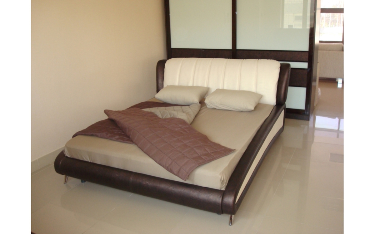 Каркас изделия, изготовленый из брусьев древесины сосны и древесно-стужечной плиты, оклеивается пенополиуретаном, средней плотности, соответствующей международному стандарту. Кровать выполняется в 3-х размерах, соответствующих размерам спального места 1400*2000 мм, 1600*2000 мм и 1800*2000 мм, а также может быть изготовлена с учетом ваших пожеланий по индивидуальным размерам.