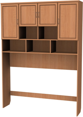 Сделать любое помещение просторным и удобным можно с помощью антресоли, которая будет хорошо смотреться в кабинете, гостиной и даже спальне. За счет высоких боковых стенок под нее уютно впишется стол, диван или кровать, а на полках можно будет разместить документы, книги, аксессуары и сувениры. Верхняя часть изделия состоит из множества секций с полками и отделениями с дверцами. Антресоль можно использовать как дополнение к рабочему столу с целью экономии пространства в комнате, а также, с целью хранения необходимых вещей и документов, которые ранее загромождали стол. Изготовленная она из высококачественного ДСП с отделкой под ольху, дуб или ясень, что делает такую мебель не только прочной, долговечной, но и презентабельной.