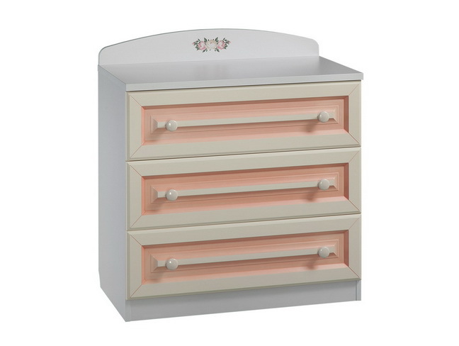 Комод из серии «Алиса». Выполнен в классическом стиле с корпусом белого цвета и кремовыми крашеными МДФ фасадами с розовой патиной. Комод имеет 3 выдвижных ящика на шариковых направляющих, поэтому в нем удобно хранить Ваши вещи, белье, рукоделие или журналы. Замечательно сочетается с зеркалом из этой же серии. «Алиса» - личный уголок Франции!