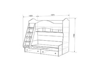 Состоит из: 2-х спальных мест, 2-х выдвижных ящиков для игрушек, полок, декоративной шторки, лестницы.