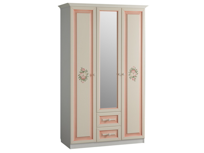 Гардеробная для юной модницы из серии «Алиса». Выполнена в классическом стиле с корпусом бежевого цвета и фасадами с розовой патиной. Нежный декор в виде букета роз на фасадах придадут комнате романтичный образ. В гардеробной есть отделения со штангой для одежды, отделения с полками для нужных вещей, выдвижные ящики для белья и зеркало. «Алиса» - личный уголок Франции!