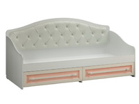 Софа из серии «Алиса». Выполнена с белым корпусом и кремовыми крашеными фасадами из МДФ с нежно-розовой патиной. Спинка софы – мягкая, со стяжкой. Это замечательный вариант для спальни и гостиной: В софе сочетается спальное место и уютный диванчик для гостей. В выдвижных ящиках можно хранить постельное белье. «Алиса» - личный уголок Франции!