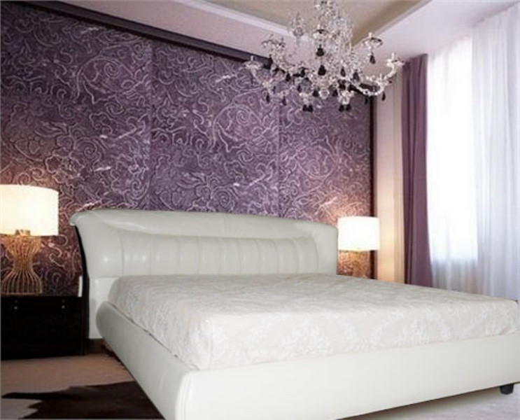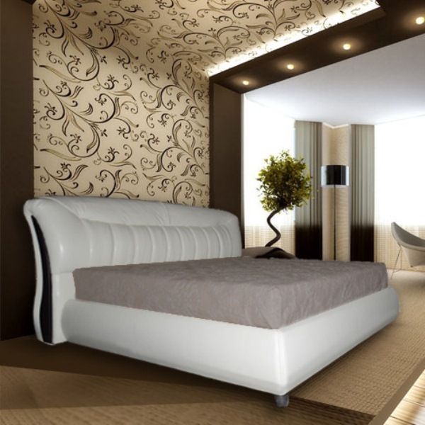 Кровать изготавливается как в эластичной экокожи на тканевой основе, так и существует возможность изготовления из однотонных тканей флоковой, велюровой и бархатной основах. Кровать выполняется в 3-х размерах, соответствующих размерам спального места 1600*2000 мм, 1800*2000 мм и 2000*2000 мм. Спинка выполнена из отдельных панелей, оформленных в багетную рамку. По вашему желанию кровать можно оснастить двумя газовыми амортизаторами для подъема ортопедического основания.