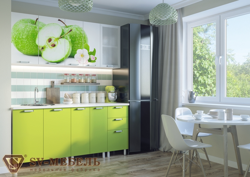 Кухонный гарнитур Яблоки с фотопечатью без глянца