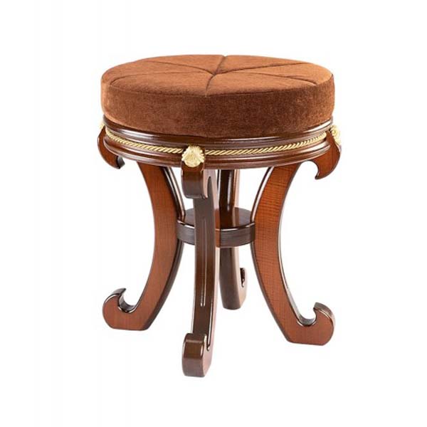 Классическая круглая банкетка с мягким сиденьем. Изящные устойчивые ножки делают ее устойчивой и прочной. Банкетка отделана золотистым витым шнуром, что придает ей дополнительный шарм. В сочетании с журнальным столиком «Глория» составит отличный ансамбль, а в отдельности украсит любой интерьер.