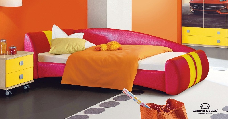 Каркас изделия, изготовленый из брусьев древесины сосны и древесно-стужечной плиты, древесноволокнистой плиты, многослойной фанеры, оклеивается пенополиуретаном средней плотности, соответствующей международному стандарту. Кровать изготавливается в любой ткани или экокоже без подбора рисунка. Возможно изготовление в комбинации как с компаньоном (вставка в виде полос), так и в одном виде ткани или экокожи, во втором случае вставка и отделочная строчка остануться. Дополнительно к кровати можно приобрести на выбор светодиодную подсветку (эко - синяя или меняющаяся регулируемая с пульта управления).