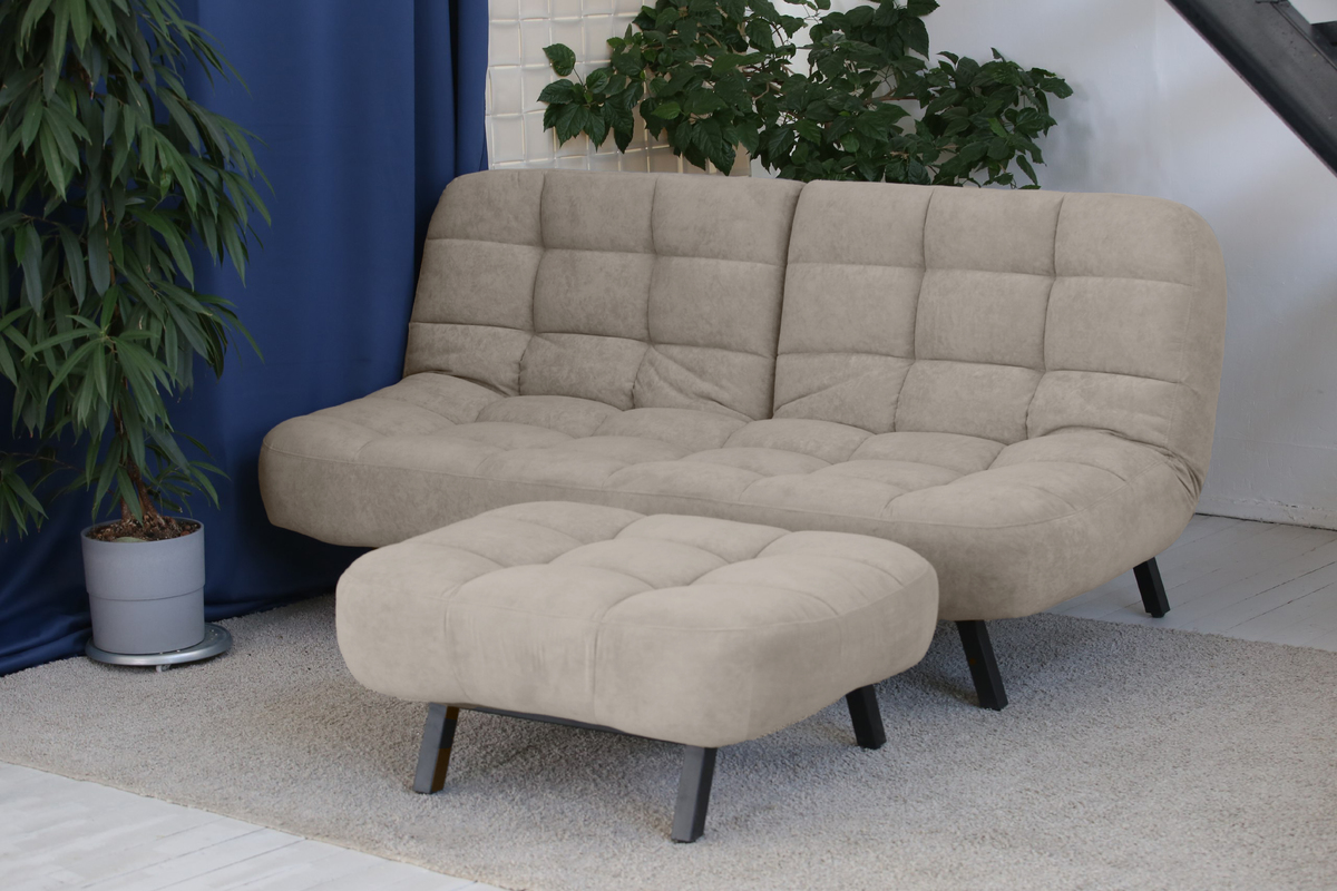 Кроме этого, покупая диван «Амри», вы сразу приобретаете и двухместную кровать. Встроенный механизм «клик-кляк» позволяет трансформировать диван в 3 положения: