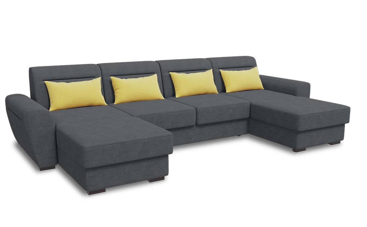 Глубокое посадочное место, дополнительные декоративные подушки под спину – создадут комфорт для всех членов семьи. Механизм трансформации «Дельфин» не требует отодвигать диван от стены, что позволит использовать его как ежедневное место для сна. В оттоманке дивана имеется дополнительное место для хранения.