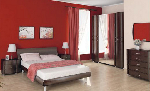 Дольче-Нотте №2 стандартная композиция полноценной, практичной спальни. Широкая кровать КР-106, две прикроватные тумбы ТБ-110, аккуратный комод КМ-102 с зеркалом ЗР-101 и четырехдверный шкаф с зеркальными дверями ШК-111 и две секции ШК-141. Цвет дуб венге придал мебели строгости и монументальности, а округлые фасады сделали спальню мягче. Впрочем, мебель прекрасно сочетается и с другими цветами, в исполнении итальянский орех или ольха спальня станет традиционной, а в оттенках дуб беленый комбинированный - раскованней.