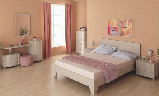 Уникальная и очень органичная Дольче-Нотте №3 выполнена в цвете дуб беленый. Особенно стоит выделить туалетный столик СТ-104, его разноуровневые тумбы создали эффект мини стенки с полочкой и совершенно разрушили стереотипное представление о форме стола. Высокий комод КМ-102 частично компенсирует отсутствие шкафа в данной композиции. Спинка у кровати КР-102, совершенно прямая, но главной изюминкой являются ножки кровати, массивные и широкие. Милый розовый пуфик в цвет к покрывалу, к сожалению, у нас вы приобрести не сможете.