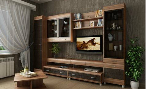 Стенка, Камелия-4 в цвете слива валлис комбинированный, узкая, поэтому гармонично впишется в комнату любого размера. Очень оригинальное размещение антресолей АН-611 над низкими тумбами ТБ-610, при таком расположении они выполняют роль полок. Не смотря на свои размеры, в стенке есть полноценный шкаф для одежды ШК-603 и витрина для посуды ШК-609. При любой расстановки мебель Камелия смотрится органично и модно, за счет плоских фасадов и комбинации цвета.