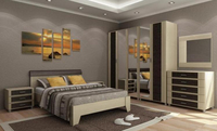 У спален бывает несколько вариантов наполнения, в данном случае это типичная спальня для упорядоченных особ. Здесь все создано для порядка и уюта. Аккуратный шкаф ШК-711 с зеркальными дверями, одностворчатый ШК-732 и комбинированный ШК-731, не большой, но и не маленький, а такой, какой нужен. Комод с пятью ящиками и зеркалом КМ-702, чтобы сложить белье в четыре ящика и сто пар мужских носок в самый нижний. Большие прикроватные тумбы ТБ-708 и просторная кровать КР-109(1400х2000) - вот идеальная спальня. Дальнейшее украшение пространства на вашей совести, но это уже не сложно, когда мебельная фабрика создала совершенство.