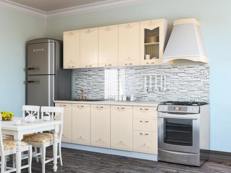 Материалы: Корпус - ЛДСП белый. Фасады - МДФ Ваниль Столешница - постформинг 26 мм