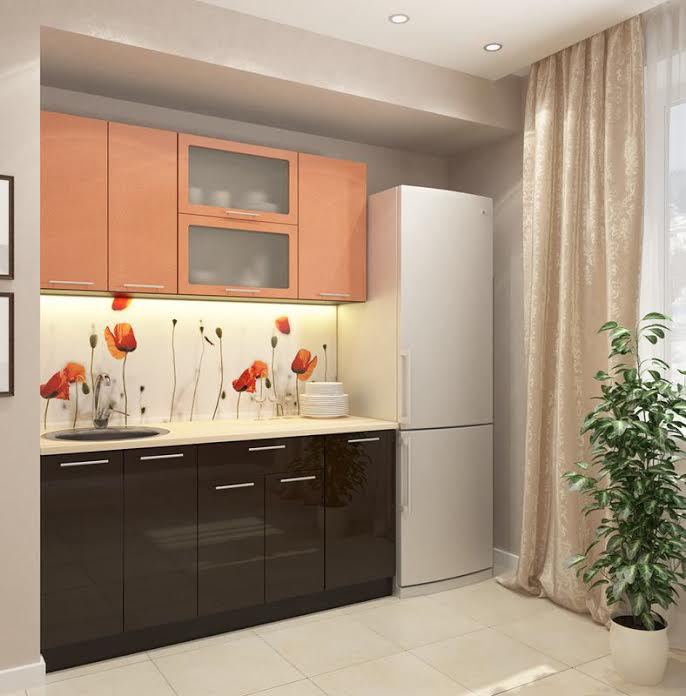 Фасад – верх – оранжевый мет, низ – горкий шоколад глянец