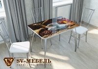 -Также можно заказать стол в тон кухни с фотопечатью, а также стулья и табуреты.
