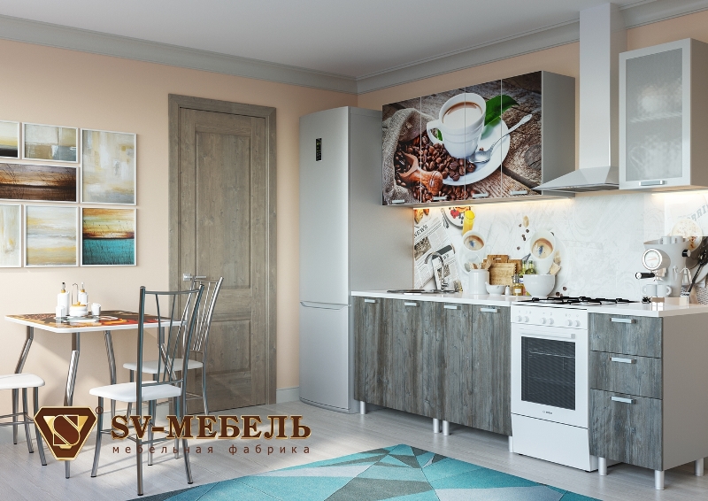 Кухонный гарнитур Кофе матовая с фотопечатью