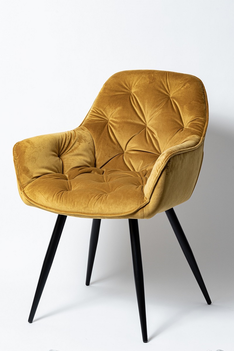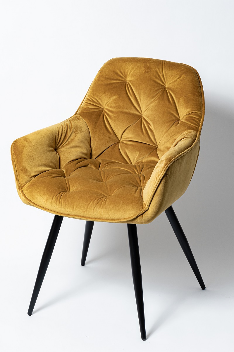 Восхитительное кресло в цвете карри, с каретной стяжкой и удобной посадкой.