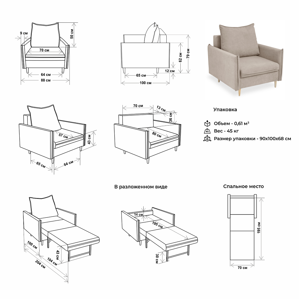 Характеристики: 800*1000*920 СПМ 1950*680*430 механизм ЮНИОР