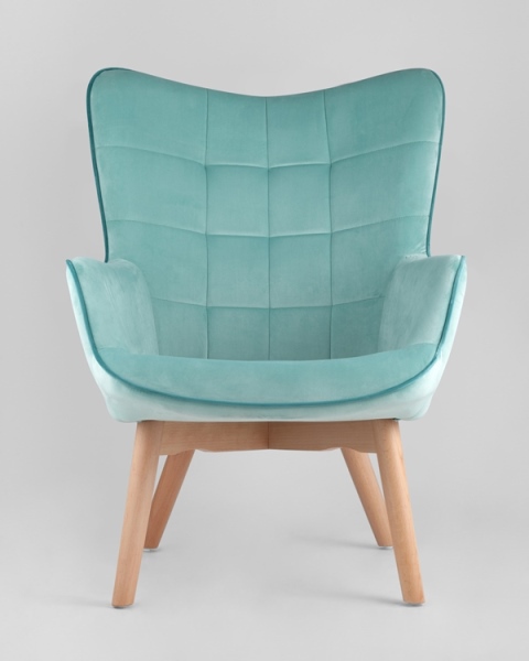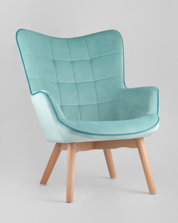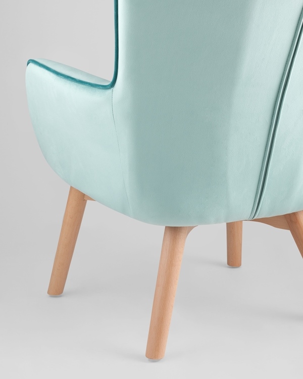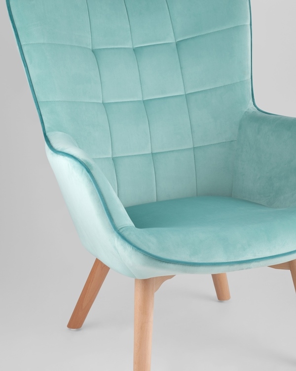 Широкое кресло с обивкой из вельвета и высокой спинкой.
