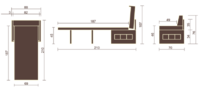 • Модель без спального места. Вместо трансформирующейся в спальное место секции может быть установлен ящик.