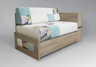 • Модель со спальным местом. Диван имеет механизм трансформации «французская раскладушка». Механизм трансформации весьма прост и требует минимальных усилий: достаточно снять подушку и поднять конструкцию сиденья, после чего установленный горизонтально механизм раскладушки, разворачивается и устанавливается на опорные ножки. При раскрытии спального места ножки автоматически раскладываются и жестко удерживаются в перпендикулярной полу позиции с небольшим наклоном вперед. Этот механизм трансформации напоминает разворачивание свитка и обеспечивает дивану компактность в сложенном виде и достаточно просторное спальное место в разложенном.