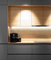 Цвет корпуса, фасада, столешницы, стекла, ручки могут быть практически любыми, цена при этом не поменяется. Кухня может быть оснащена доводчиками (Blum, Boyard).