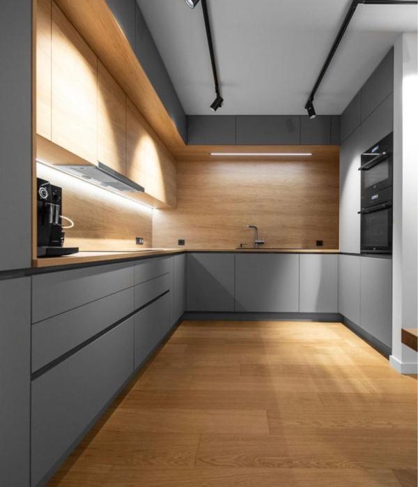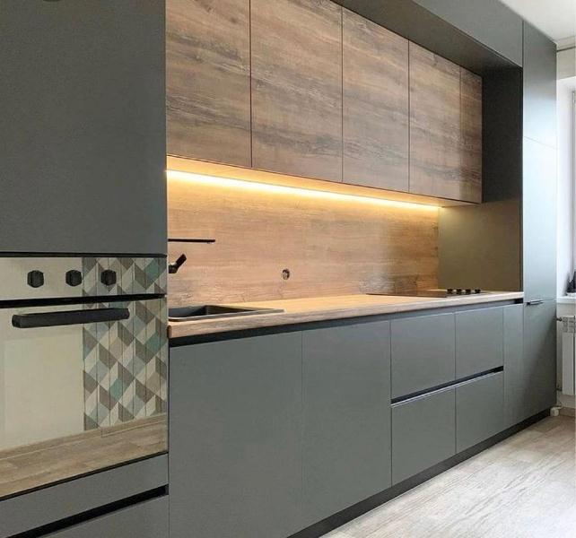 К кухне можно заказать фартук (мебельный щит) ХДФ с фотопечатью, стекло с фотопечатью либо фартук в цвет столешницы.