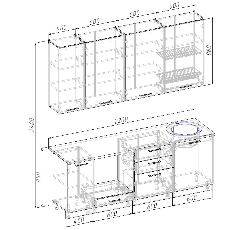 Также можно дозаказать фартук, мойку, смеситель. Посудосушитель в подарок!