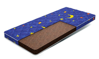 • два слоя латексированного кокосового волокна толщиной по 30 мм каждый – характеризуются высокой прочностью, хорошей упругостью и необходимой для профилактики искривлений позвоночника жесткостью, материал является «дышащим», обладает антибактериальным эффектом, не крошится в процессе эксплуатации и не проседает.