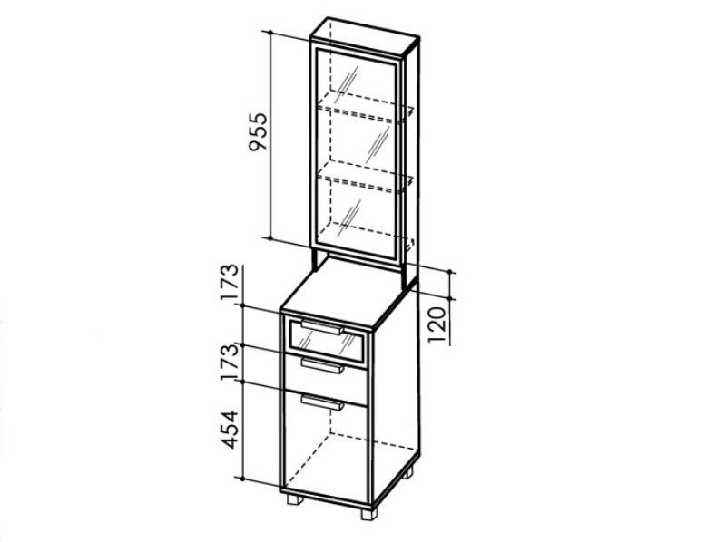 За открывающимся зеркалом скрывается удобная ниша с 2 полками.
