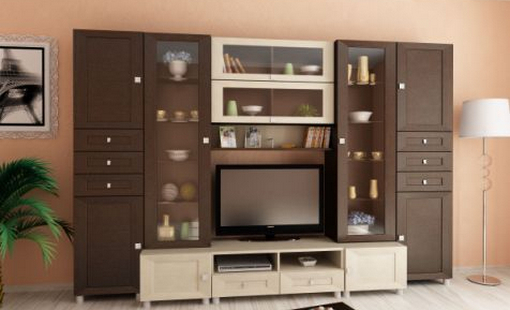 Патриция-14 одна из самых красивых композиций и имеет богатую комплектацию. Надо отдать должное дизайнерам фабрики, самое сложное в составлении таких образцов, это совместить простоту и изящество, с функциональностью и разумной ценой. Такой баланс удержать трудно, но возможно. Очевидно, ее красота заключается в симметрии, а может в сочетании цвета. Два крайних универсальных шкафа ШК-517 и приставные витрины ШК-530 выполнены в цвете дуб венге, Нижние сегменты: две ТБ-508 и центральная тумба ТБ-503 - в цвете дуб беленый. Соединительные элементы, две антресоли АН-503 и полка ПЛ-302 - в цвете дуб венге комбинированный.