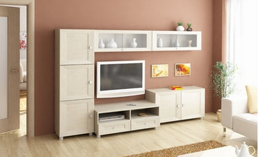 В белом цвете мебель смотрится выигрышной при соблюдении некоторых условий. Первое - это правильная расстановка, второе, минимум деталей и третье, оригинальный дизайн. Патриция-6 это типичный представитель минимализма. Три кита ее существования - это функциональность, простота и лаконичность формы. Данная композиция состоит всего из пяти деталей, но в ней есть все, что нужно для создания интерьера гостиной. Небольшой шкаф (ШК-507), две антресоли-витрины (АН-505), миникомод (ТБ-502) и тумба для TV аппаратуры (ТБ-503).