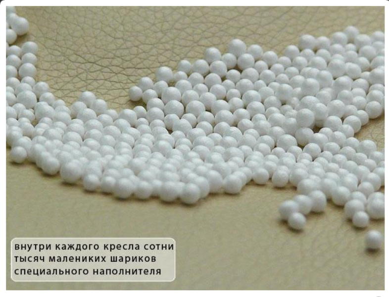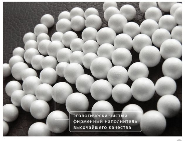 В верхнюю часть кресла, для удобства перемещения вшита ручка. Молния на внешнем чехле достаточно длинная, вшитая в бок кресла, что позволяет легко снять чехол для стирки. Боковая молния закрыта планкой для эстетичного вида изделия. Чехлы между собой соединены с помощью липучек для правильного распределения наполнителя во время использования. Наполнителем служат гранулы пенополистирола.