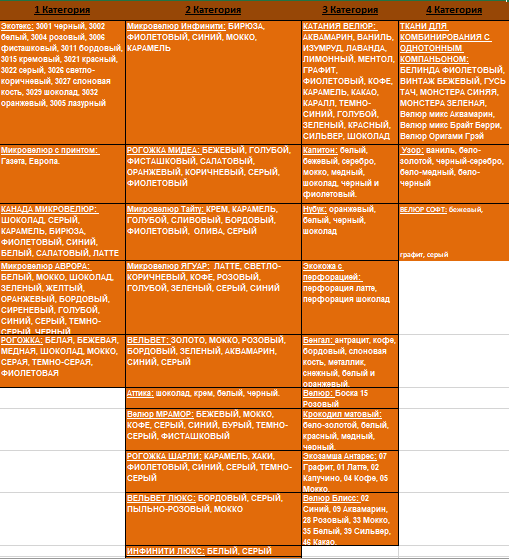 На сайте представлена модель в 1 категории. Цвета каркаса: Белый, Черный, Бежевый, Коричневый, Золото + 100 руб.