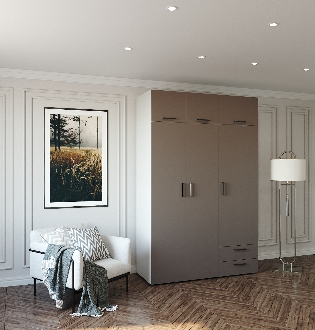 Распашной шкаф в цвете Мокко, может быть дополнен полками внутри. Комплектацию можно менять.