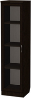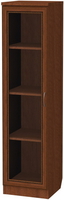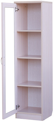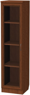 Вашему вниманию предлагается одна из разработанных нами линий для решения этой задачи. Первый предмет мебели в серии – простой, и в то же время миловидный шкаф небольшой высоты и ширины, который отлично расположится в любом помещении. Особенность данной модели в том, что при небольших габаритах она имеет несколько полок, закрытых стеклом, достаточно высоких для того, чтобы вместить объемные тома, фотоальбомы или любые сувениры и вещи, которые обычно не помещаются на низеньких полках. Данный шкаф может отлично подойти для небольшой гостиной комнаты: ведь он займет совсем немного места. С другой стороны, его можно очень удачно скомпоновать с другими шкафами из этой же серии и тогда получится интересный ансамбль, который придаст оригинальный вид вашей комнате или библиотеке. Естественно, его не только можно поставить в любом помещении, но он еще и отлично впишется в любой интерьер – квартиры или дома, офиса, учебного класса – благодаря своему универсальному, лаконичному, но очень стильному дизайну.