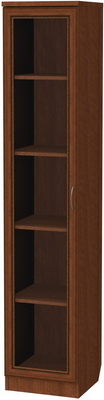 Имея пять вместительных полок, закрытых стеклом, и вариативную цветовую гамму – можно выбрать оттенки благородных древесных пород - данный шкаф может прекрасно вписаться в домашнюю обстановку, придать ей уют и в то же время респектабельность. Ведь подобрав удачный цвет, можно дополнительно подчеркнуть неповторимый стиль и характер вашей комнаты или помещения. Например, с помощью одного из оттенков может создаться впечатление старой, добротной, солидной классики. А при выполнении в другом выигрышном для вашего интерьера цвете шкаф подчеркнет его современность – благодаря универсальному, простому и элегантному дизайну, а также удачному тону подержится необходимое настроение.