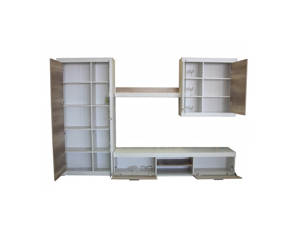 Изюминка данного набора - котрастное сочетание цветов и текстур. Большре количество мест для хранения, компактность и цветовое решение сделают Вашу готиную не только функциональной, но и очень уютной.