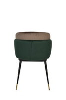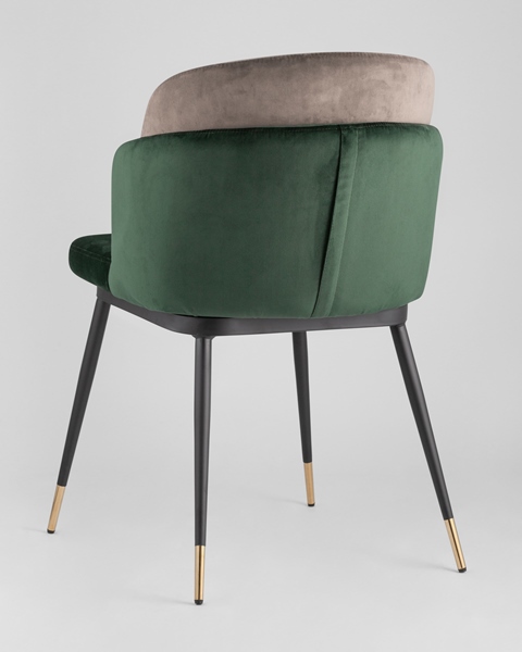 Мягкий двухцветный стул с обивкой из вельвета. Надежная опора достигается благодаря металлическому каркасу и удобным устойчивым ножкам, украшенным золотом. Спинка состоит из двух элементов, внутренняя часть с красивой вертикальной строчкой.
