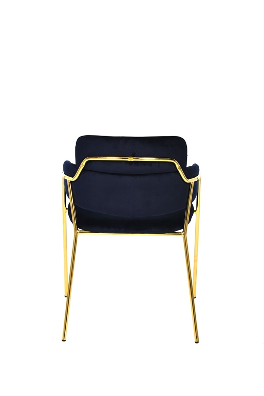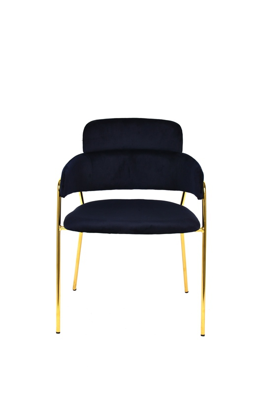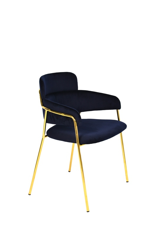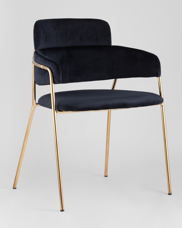 Стильный стул Польша с оригинальной формой спинки, высокой поддержкой и подлокотниками. В качестве обивки используется мягкий вельвет. Металлический каркас золотого цвета огибает спинку и выступает аккуратным акцентом модели. Широкое сиденье обеспечивает удобную посадку и уют.