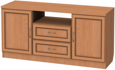 Несмотря на незначительные размеры модель достаточно вместительна. Помимо телевизора и проигрывателя дисков в ней можно хранить и множество других вещей. Два небольших центральных ящика позволяют использовать тумбу в качестве комода и хранить в них постельное белье, банные принадлежности, одежду, игрушки, различную технику. Два вертикальных ящика по бокам со встроенными полками могут использоваться в качестве места для хранения папок с документами, дисков, книг и канцелярских принадлежностей. Небольшая ниша специально предназначена для размещения DVD-проигрывателя.