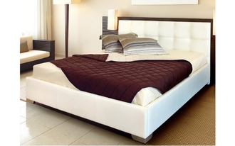 Каркас изделия, изготовленый из брусьев древесины сосны и древесно-стужечной плиты, оклеивается поролоном толщиной 10 мм, средней плотности, соответствующей международному стандарту. Кровать имеет две угловые опоры (деревянные либо металлические) изображены на фотографиях. Кровать выполняется в 3-х размерах, соответствующих размерам спального места 1400*2000 мм, 1600*2000 мм и 1800*2000 мм, а также может быть изготовлена с учетом ваших пожеланий по индивидуальным размерам.