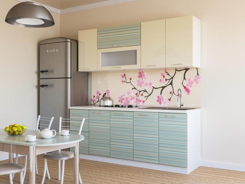 Стол-мойка 600 мм без столешницы (предполагается накладная мойка); Стол рабочий 800 мм со столешницей; Стол рабочий 400 мм с 3-мя ящиками со столешницей; Шкаф навесной под посудосушитель 600 мм (сушка в комплект не входит); Шкаф навесной 800 мм с 2-мя откидными дверками с одним стеклом; Шкаф навесной 400 мм с 1-ой дверкой;